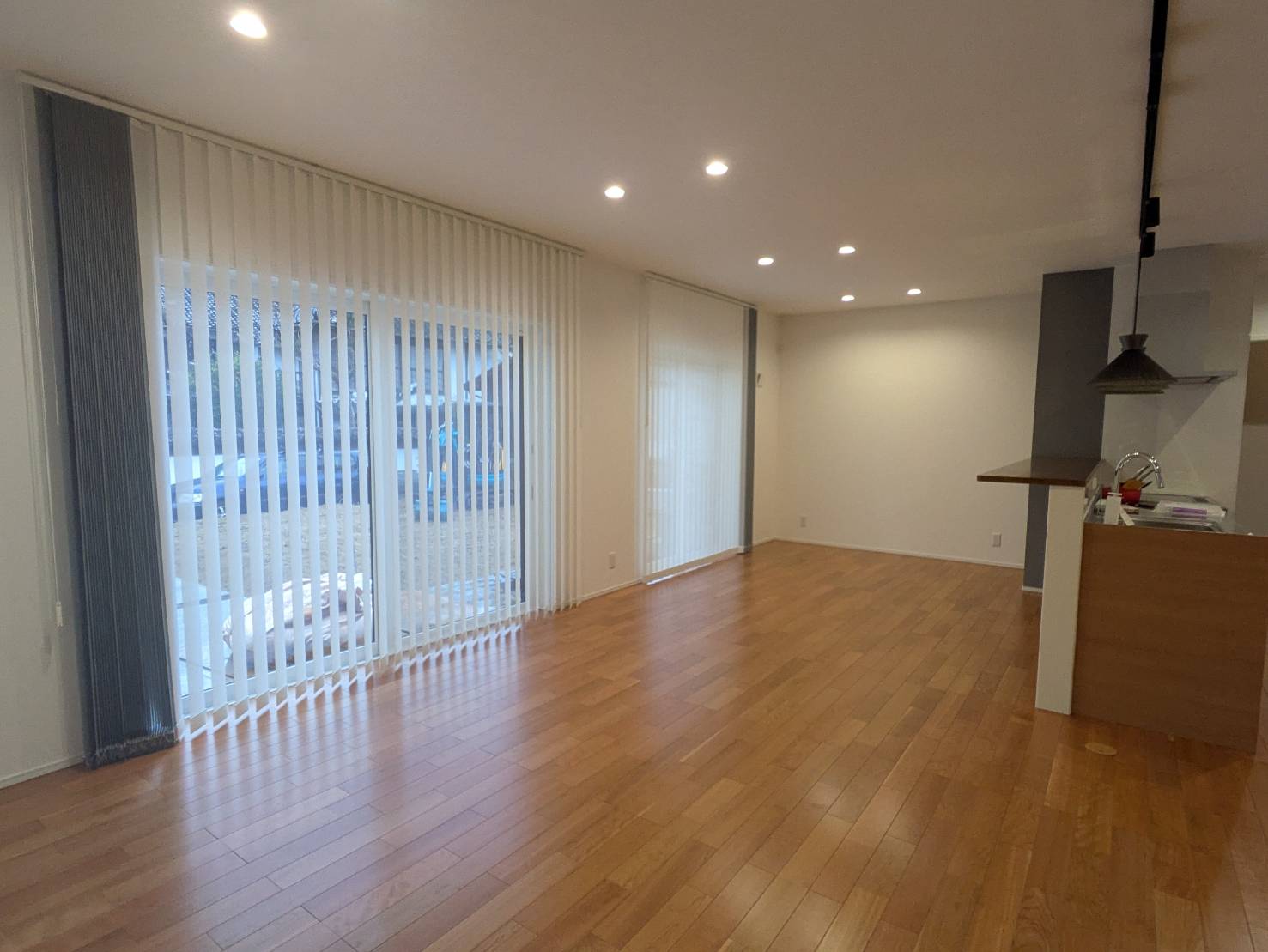 こちらのお宅では、天井から大きな窓を左右に振り分けて設置しました。